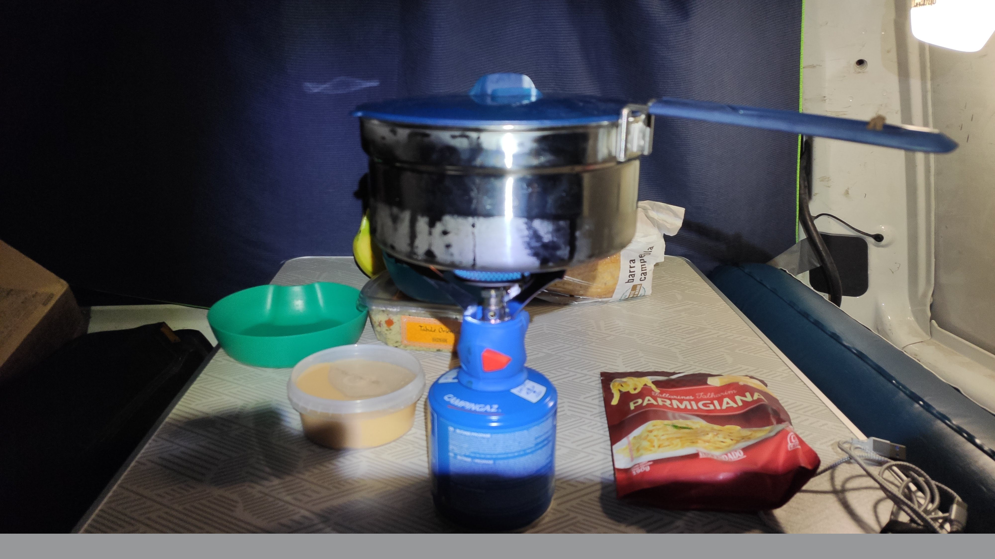 It was Easter week in the Pyrenees and it was too cold to be outside. I decided to cook inside, on an improvised little table, without even having a proper stove. The menu: pasta that, spoiler alert, was a nightmare to clean up afterwards.