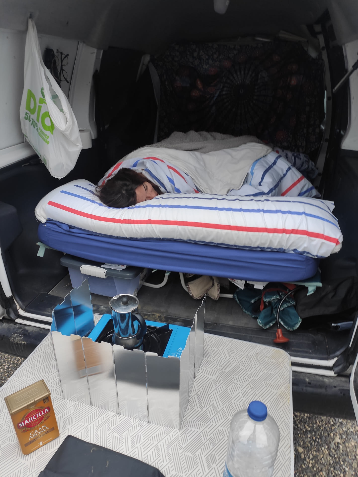 We’ve gone from an air mattress to having a mini house with just enough to live comfortably. Without homologations, without any construction work, and learning with each trip. So if you’re dreaming of van life but are held back by not having the perfect van, forget about that. Start with what you have. A mattress, a couple of boxes, and try to see if you like it. What matters is not how your van looks, but the places it takes you and the experiences you live in it.